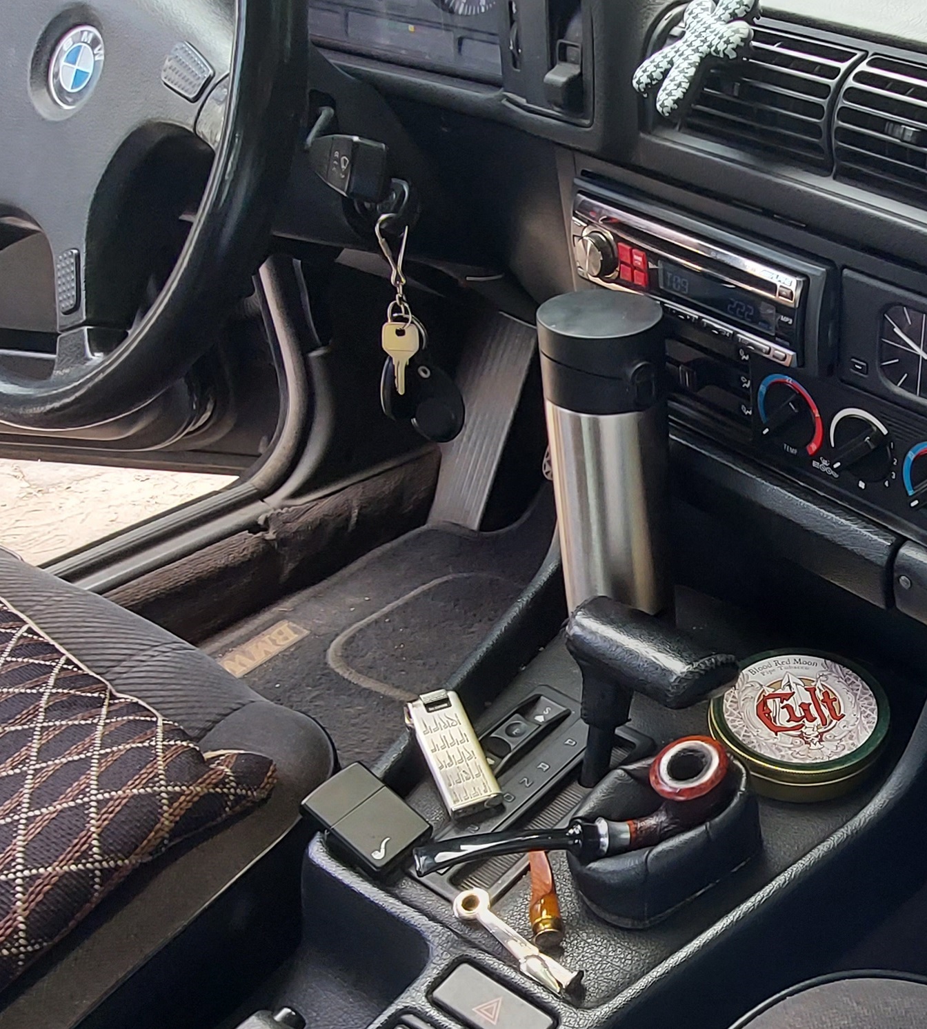 Персональный автомобиль, ещё полвека назад чисто позиционное благо, теперь практически общедоступен, но по-прежнему остаётся исключительно личным пространством и святая святых каждого автолюбителя. Я уже запутался в законах о запрете курения, не уверен – можно ли курить в автомобиле, но как это сделать безопасным и удобным для курильщика могу посоветовать. Логичное решение покурить трубочку два раза в день – с работы и на работу, тем более что у некоторых такие пути занимают солидные промежутки времени. Если вы не нервничаете за рулем, привыкли к обязательной процедуре прохождения пробок в час пик, то размеренность, а можно даже сказать медитативная природа дороги вполне способствует курению трубки. Единственное, что важно – трубка не должна мешать управлять железным конем. Поэтому правило №1 – в машине курим полноценные «зубные трубки», те, что можно курить, длительное время, не вынимая из зубов. Что именно это будет – сверхлёгкие канадки или небольшие бенты решать вам, но они должны сидеть в зубах как влитые и не отвлекать внимание от дороги. Правило №2 – позаботится о месте, куда вы отложите трубку, если понадобится. Идеально, если это будет глубокая кожаная подставка, желательно ещё и сцепленная с поверхностью, на которой стоит. На магические способности Sitter pipe в движущемся транспорте я бы не рассчитывал. Да, дороги становятся лучше, возможно даже скоро можно будет курить в машине сигары, не роняя пепел на колени, но движение всегда непредсказуемо – резкое торможение и вот не потухшая трубка летит черт знает куда на коврик под сиденье, а тлеющие частицы табака, поглощая кислород радостно вспыхивают и рассыпаются веером. Может к прямому возгоранию это не приведет, но всё равно приятного мало, а главное, опять-таки, напрочь отвлекает от управления, что уже в свою очередь весьма и весьма чревато.
