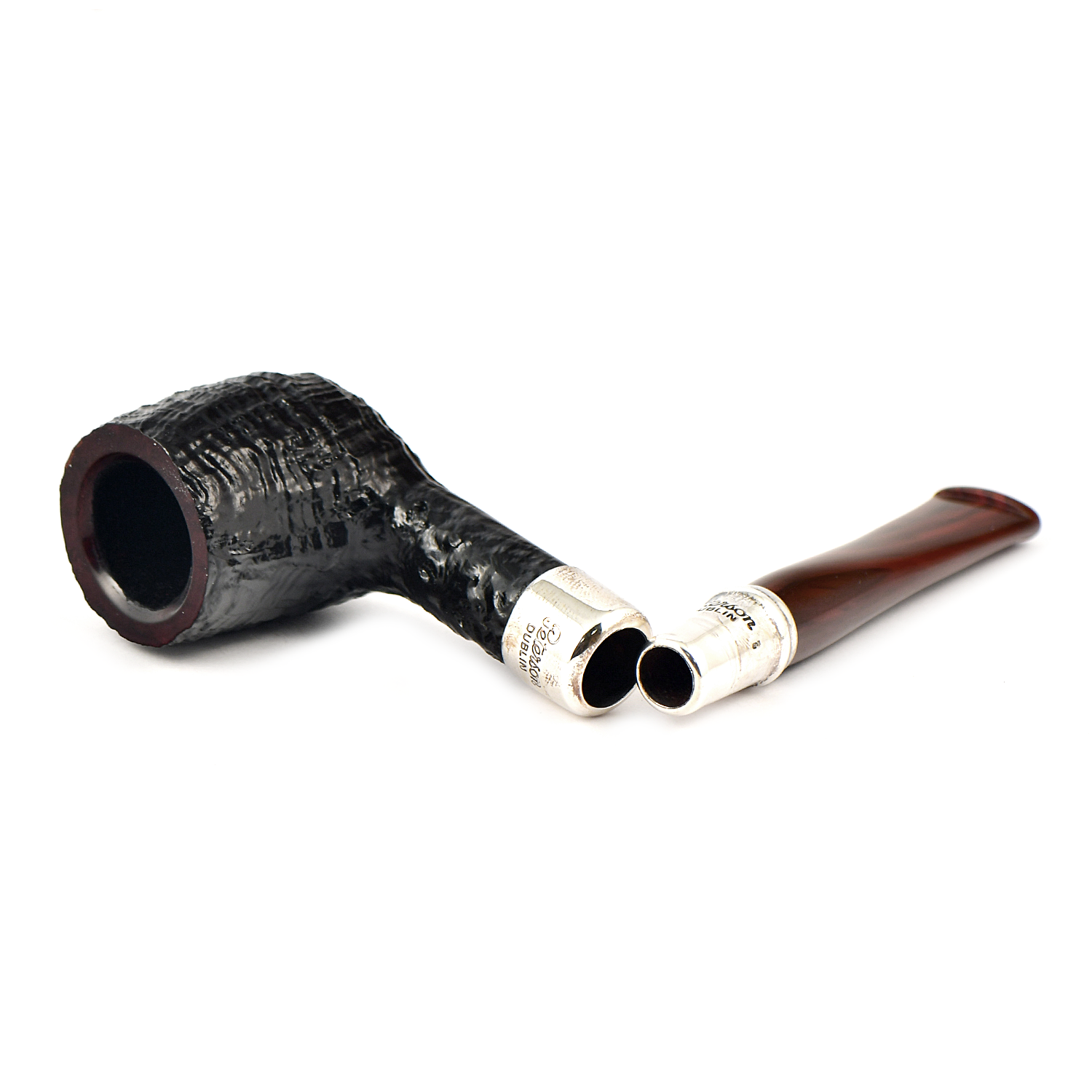 Трубки серии Newgrange Spigot отличаются темным бластовым финишем, контрастирующим с традиционным мундштуком из камберленда, и светлым креплением Spigot из чистого серебра.