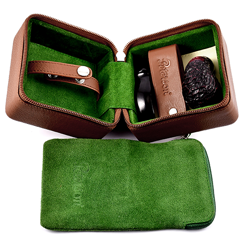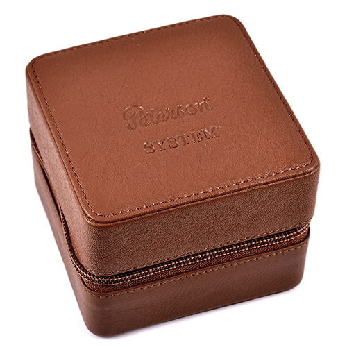 Он специально разработан для хранения любой трубки Peterson System, причем в разборном виде, чтобы дать камере System просохнуть после курения. Кейс поставляется в комплекте с соответствующей кожаной подставкой для трубки и зеленым замшевым кисетом для табака с прорезиненной внутренней поверхностью.