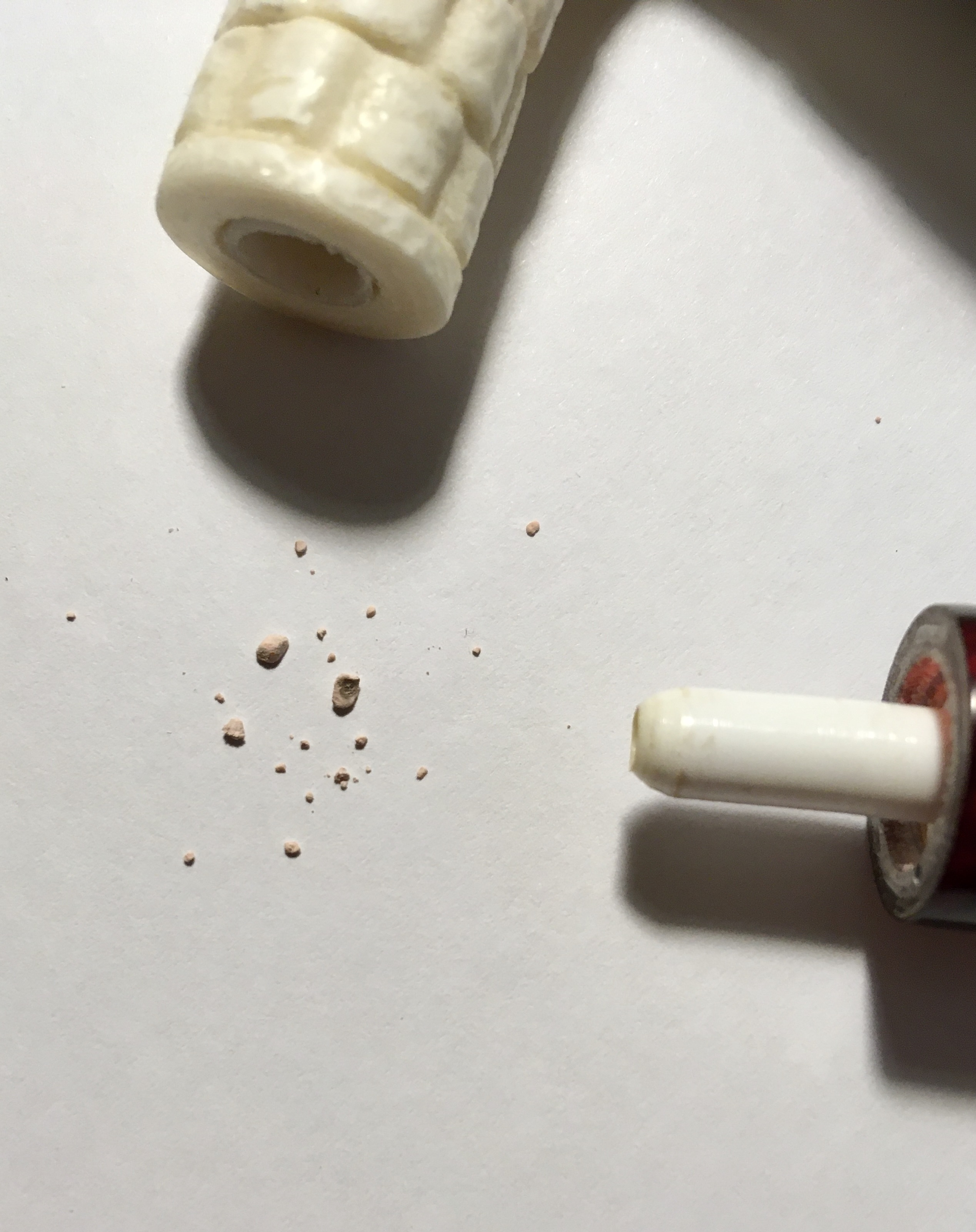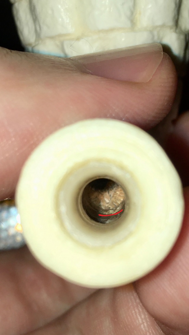 Действительно, сначала пенковая крошка напугала Однако удалось детальней установить причину и локализацию Оказалось, что пенковой крошкой было засыпано пространство между вкручиваемой цапфой и мундштуком Выкрутив цапфу, вычистил всё, и курение стало превосходным