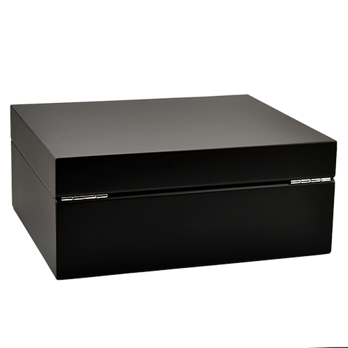 Вместимостью до 75 сигар, он предлагает достаточно места для хранения ваших любимых сигар. Матовая черная отделка и посеребренные петли придают ему элегантный вид.
