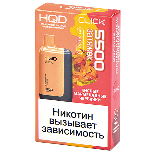 Многоразовая POD-система HQD CLICK - Кислые мармеладные червячки (5500 затяжек) - (1 шт.) купить за 1 770 руб. в Москве.