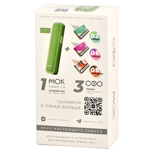 Набор MOK Forward 2.0 - Зелёная виста + 3 пачки стиков COO: COO Green (ментол), COO Purple (черника), COO Bakhcha (арбуз).