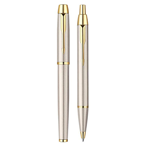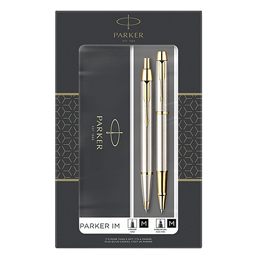 Подарочный набор Parker IM содержит роллерную и шариковую ручки модели Brushed Metal GT.