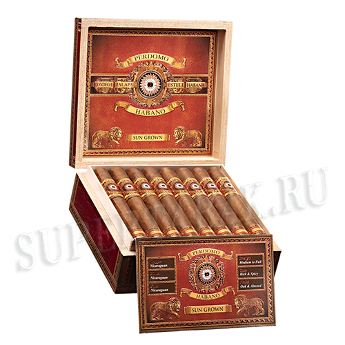 В Habano Barrel-Aged Sun Grown используется покровный лист, который был выдержан 6 лет для того чтобы перейти к главной части, выдерживанию в течении 10 месяцев в бурбоновых бочках. В качестве начинки используется выдержанный длиннолистовой табак из долины Халапа, Кондеги и Эстели, с собственных плантаций Perdomo в Никарагуа, в результате чего получается насыщенная смесь с ароматами специй, земли и поджаренных грецких орехов с фоновым оттенком бурбона.