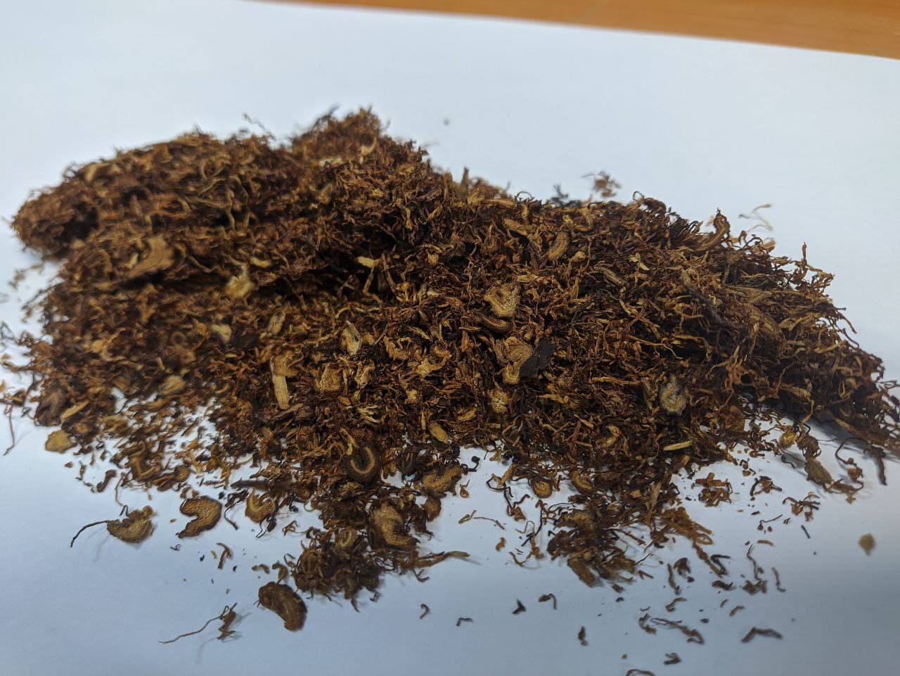 - Мусор. Табачная жилка не удалена, порезана вместе с листьями.
