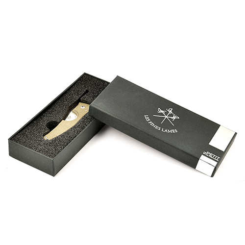 Эта модель Le Petit немного меньше оригинала и стала самой популярной моделью Les Fines Lames благодаря легкому весу и компактным размерам. Всего четыре с половиной дюйма в длину и очень тонкий, Le Petit легко помещается в карман или в дорожный хьюмидор, при этом он может разрезать сигару калибра 58. Для достижения наилучших результатов при использовании Les Fines Lames Le Petit убедитесь, что логотип лезвия обращен к сигаре во время резки. Это гарантирует правильный контакт с лезвием ножа и каждый раз правильный разрез.