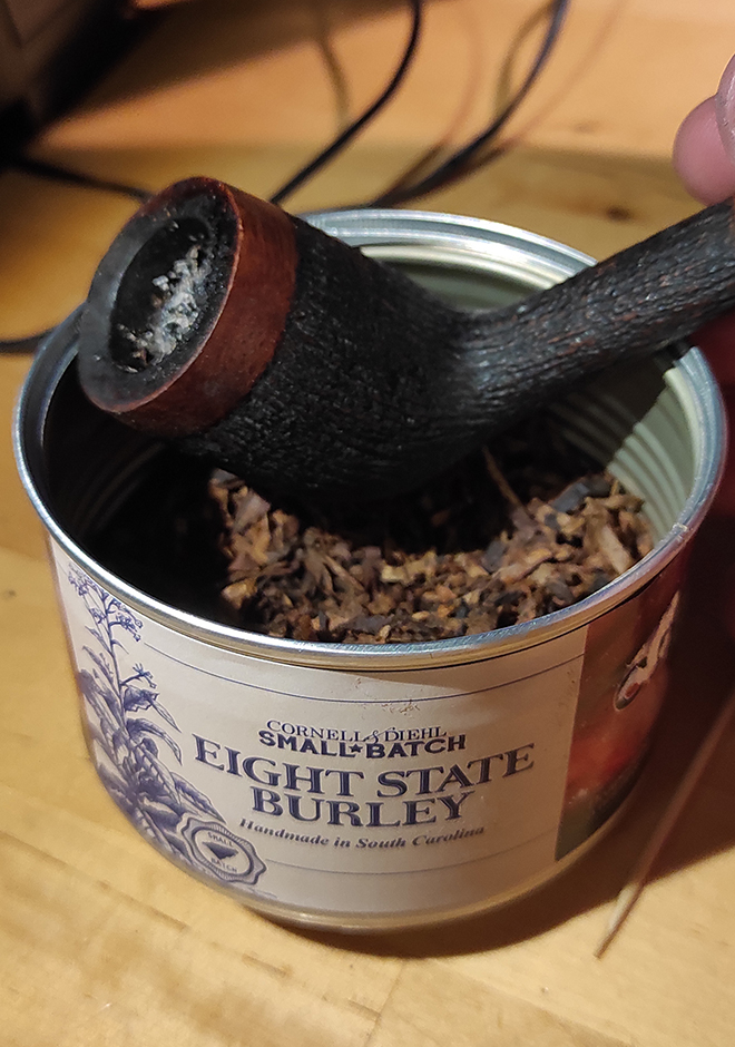 Очень качественный орехово-шоколадный Берли. Запах из банки божественный. Нарезка - забивай и кури, практически никакой подготовки не требует (разве что дать минут 10 "подышать" перед забивкой). Курится прохладно, довольно медленно, дым густой, обволакивающий, плотный и очень ароматный. Не крепкий, но и не пустой, накуривает достойно.