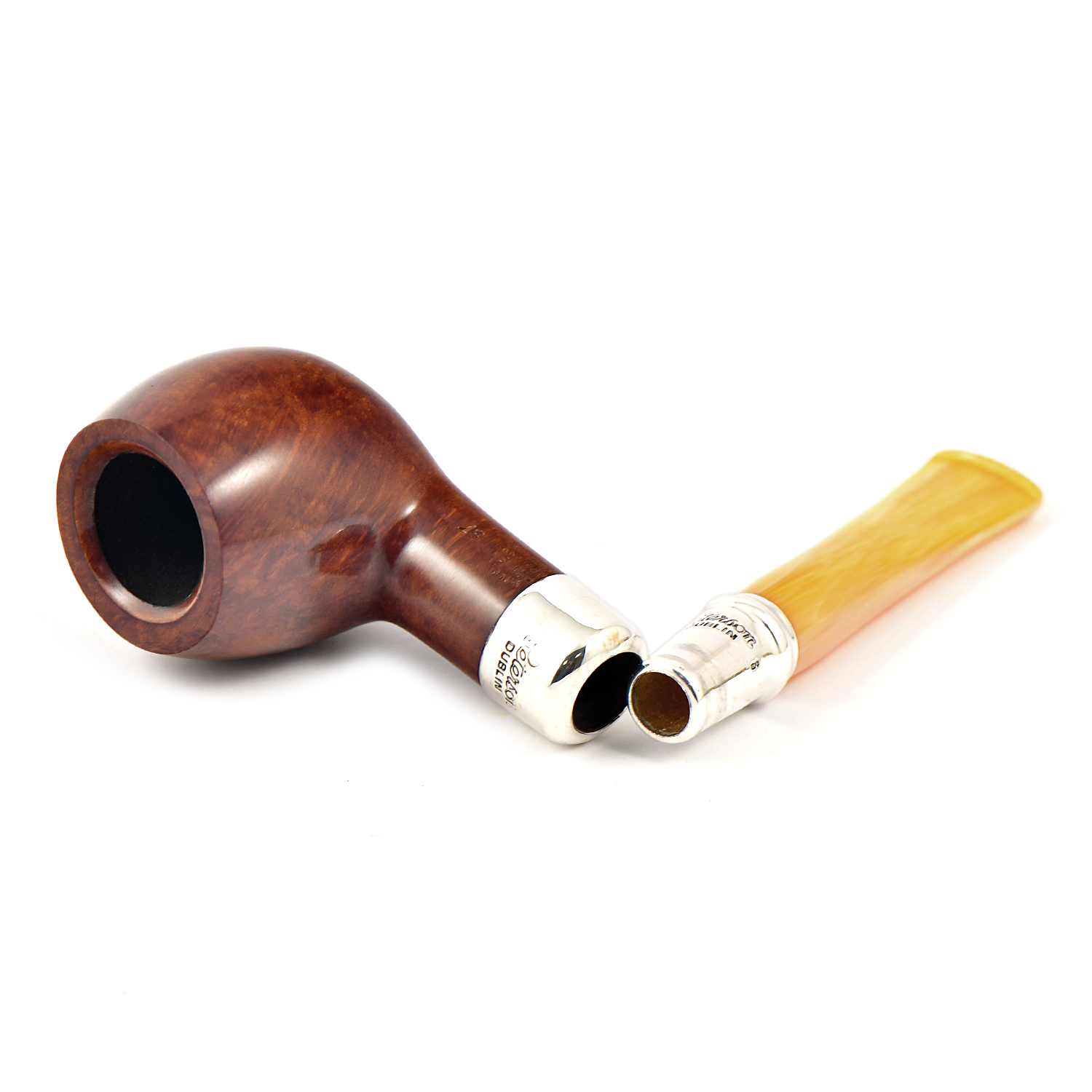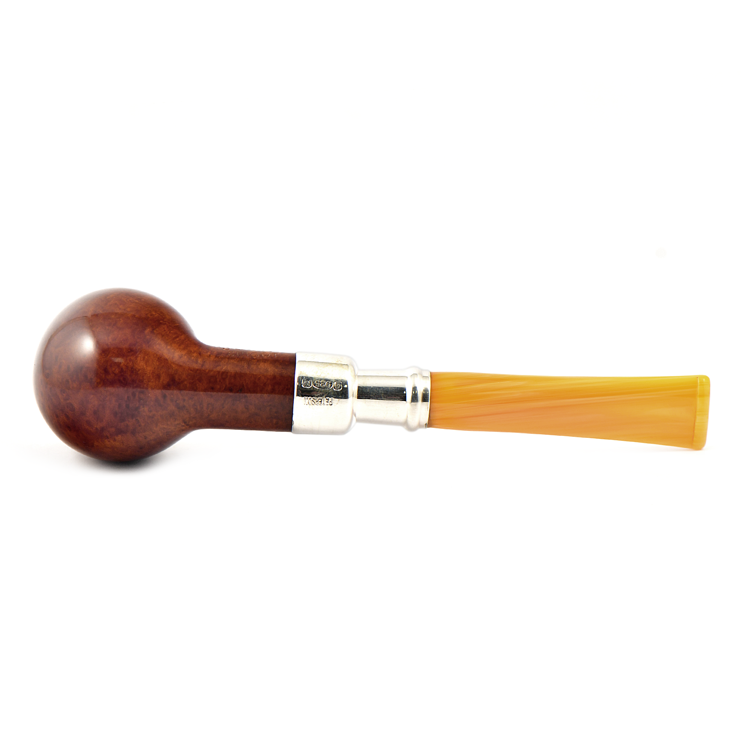 В этом гладком варианте яркое серебро Rosslare Spigot и насыщенный мундштук создают поразительно современный эстетический образ, который выделяется яркостью и напоминает о ранних годах производства трубок, когда для изготовления мундштуков использовался настоящий янтарь.