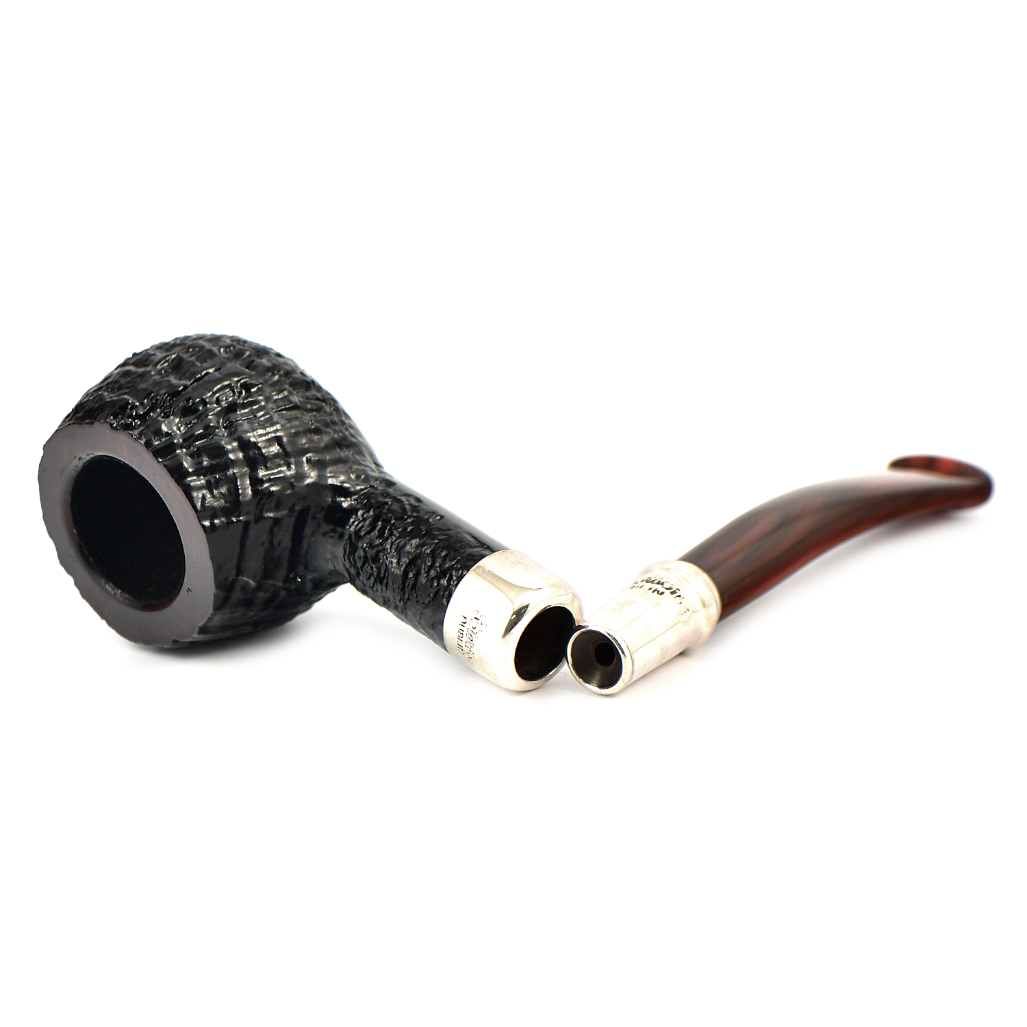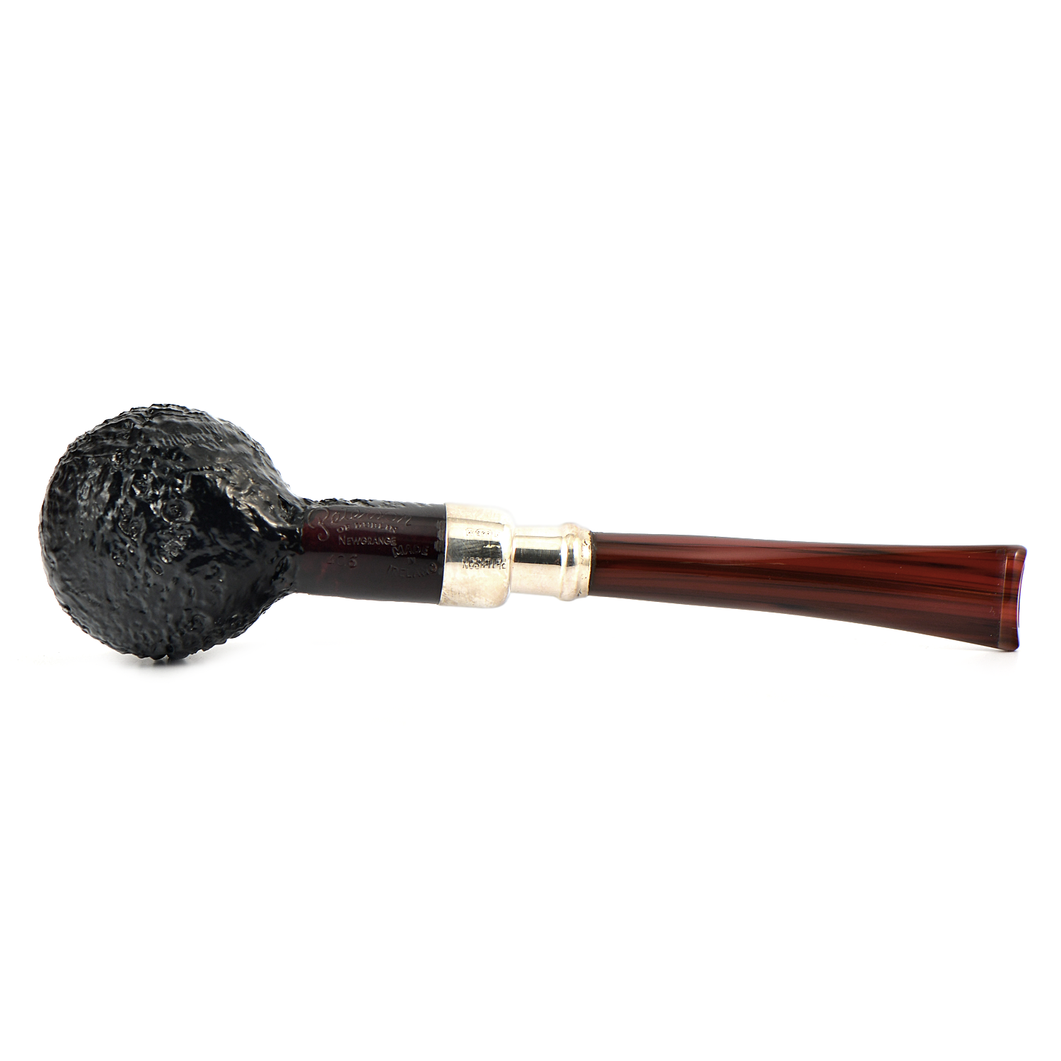 Трубки серии Newgrange Spigot отличаются темным бластовым финишем, контрастирующим с традиционным мундштуком из камберленда, и светлым креплением Spigot из чистого серебра.