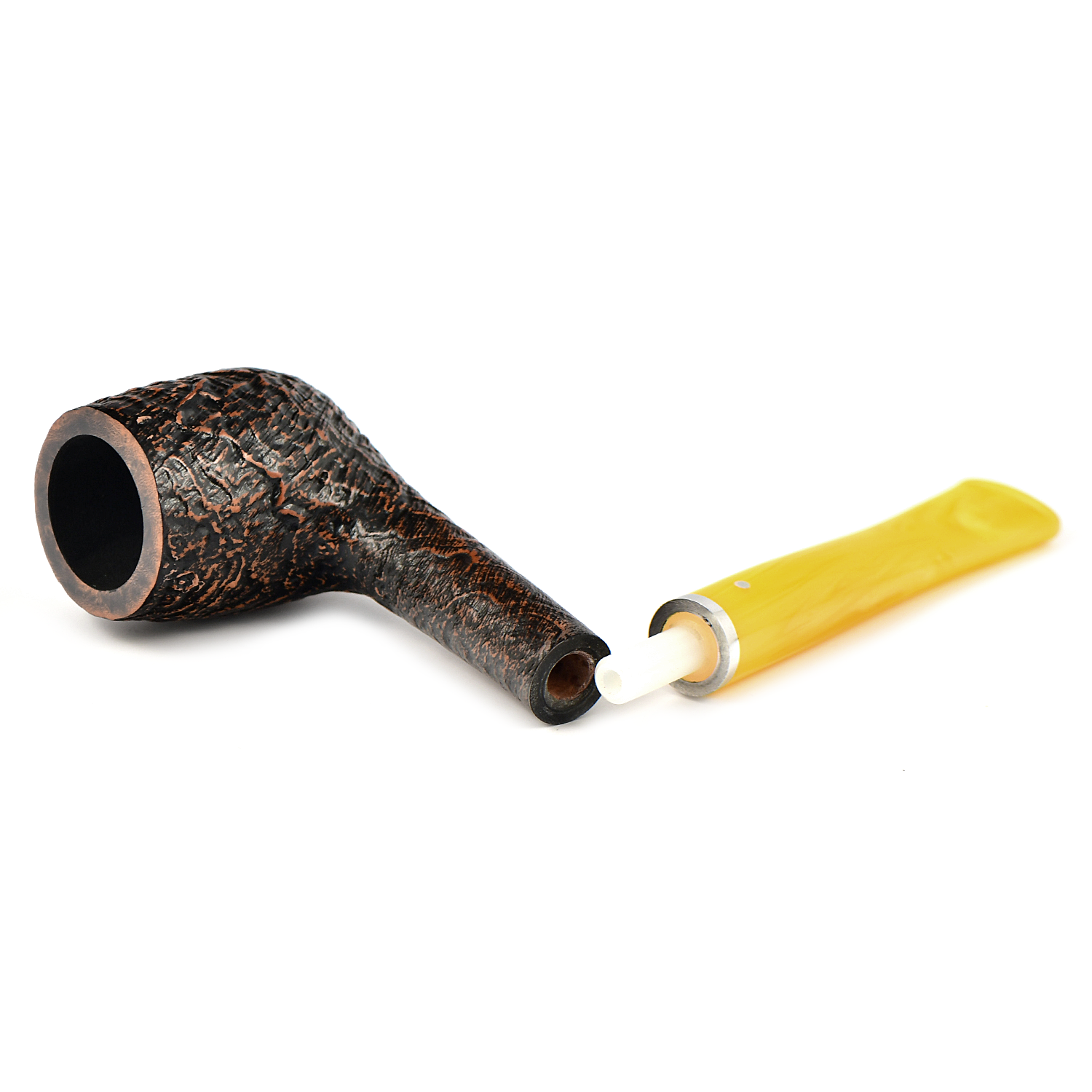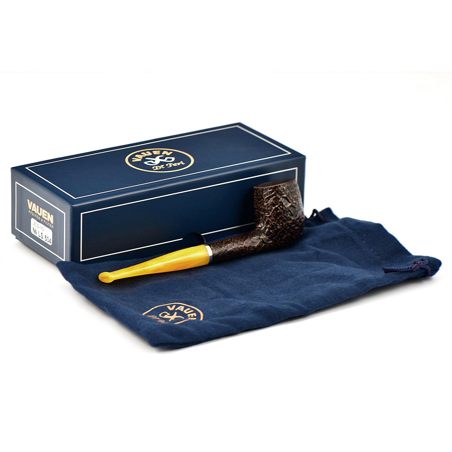 Курительная трубка Vauen Lessing с пескоструйной обработкой и белой точкой, желтый мундштук которой подчеркивает отличительный характер серии.