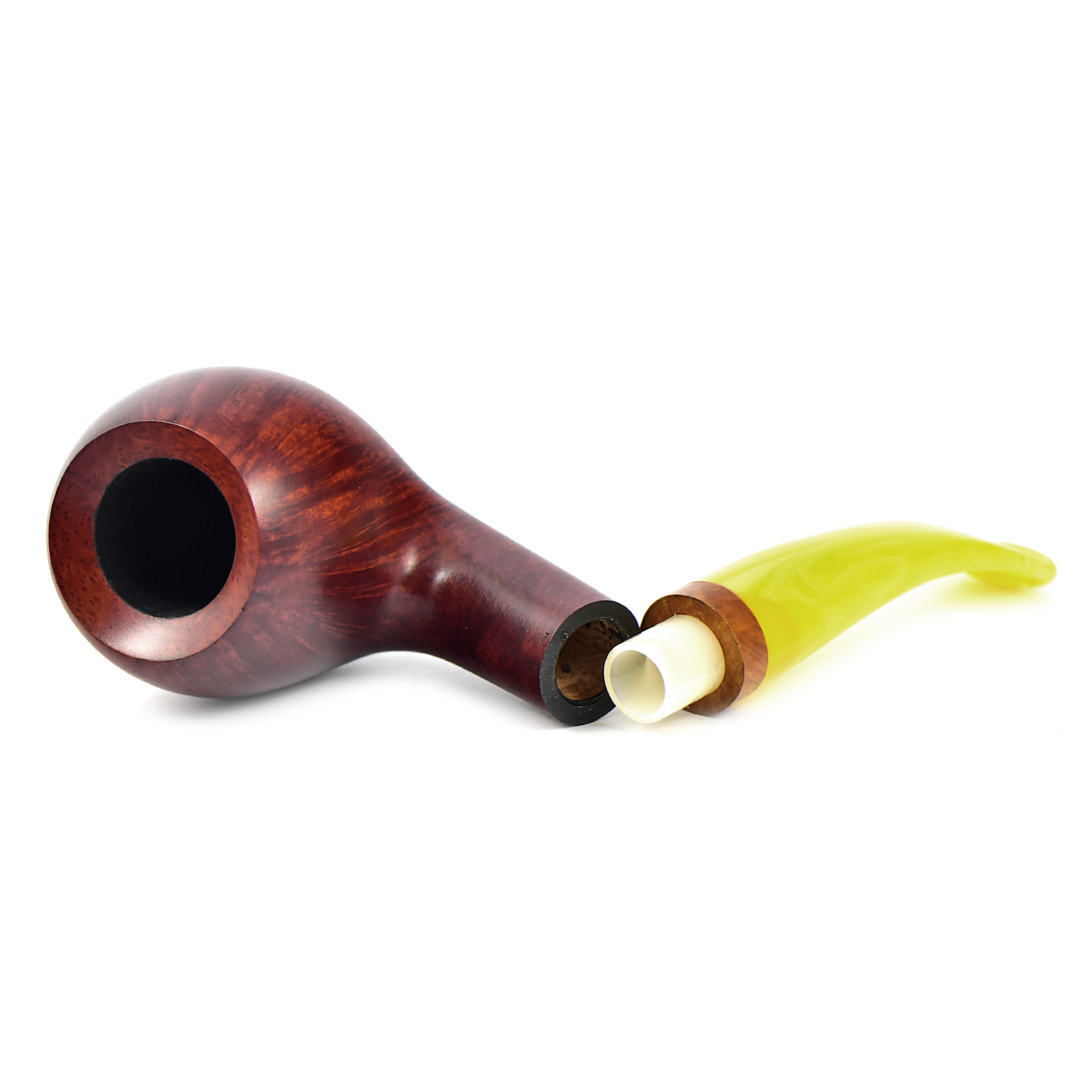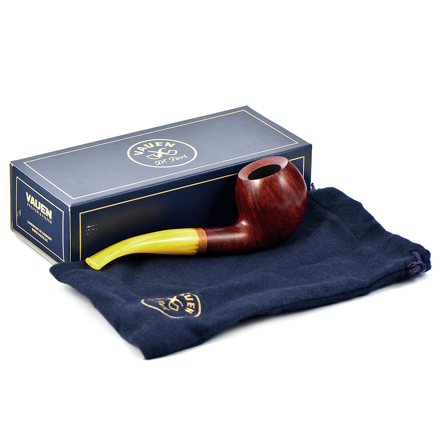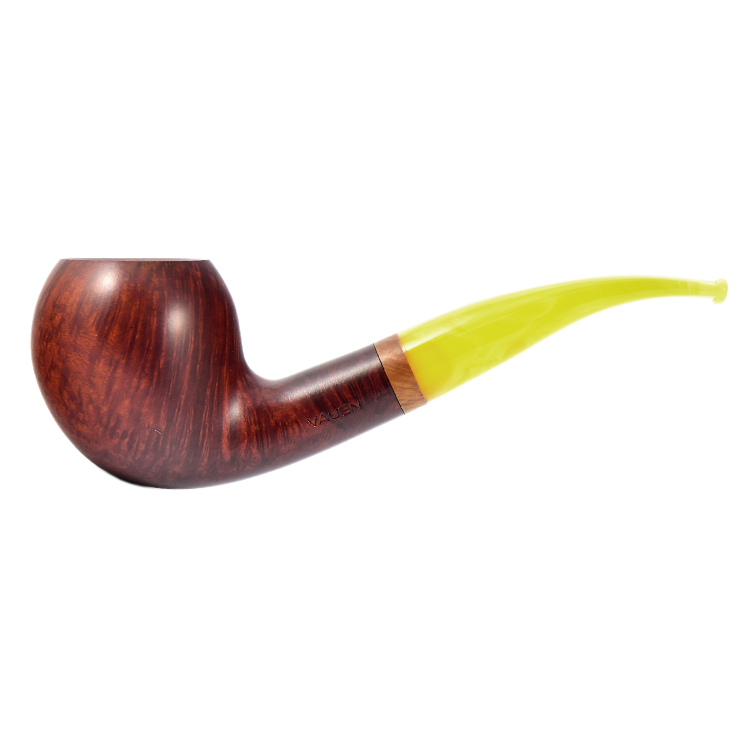 Курительная трубка Vauen Sola - Sola означает «солнечный». Сияющее сочетание теплого коричневого оттенка и желтого мундштука. Кольцо из бриара, выточенное вручную, завершает украшение.