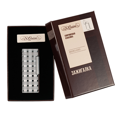 Стильная кремниевая зажигалка S.Quire с тонким корпусом стального цвета и необычной фактурой.